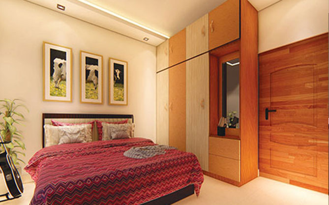 Air conditioned master bedroom with an wooden flooring is the best love story that one could ever dream of. And you have it !